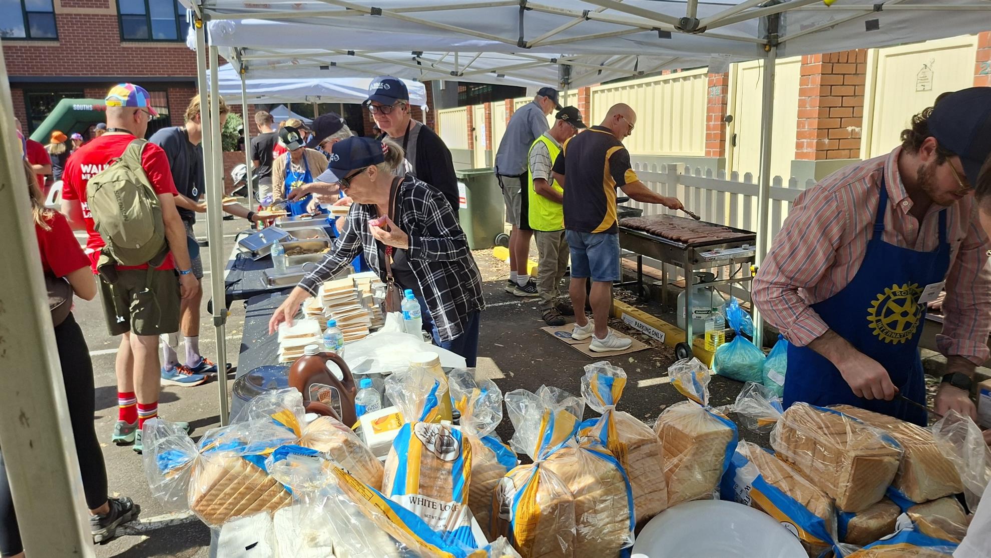 It was truly amazing to see how everyone just got stuck into the various roles - delivering supplies from the fridge, stacking bread and napkins, cutting sausages strings, cooking onion and sausages, refilling sauce bottles, serving, cleaning up, etc.