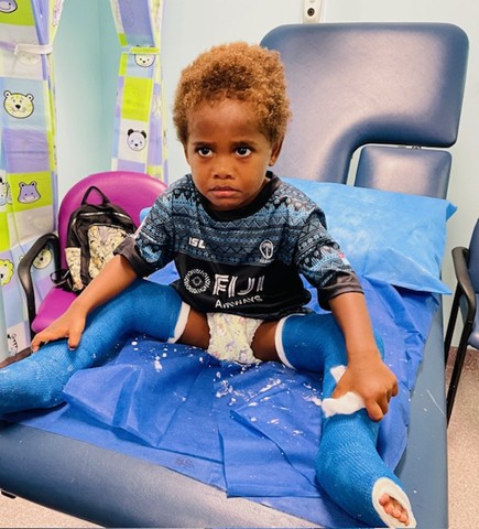 For a little boy used to having the run of his home and village, the casts are restricting him somewhat, but he is facing up to the challenge!